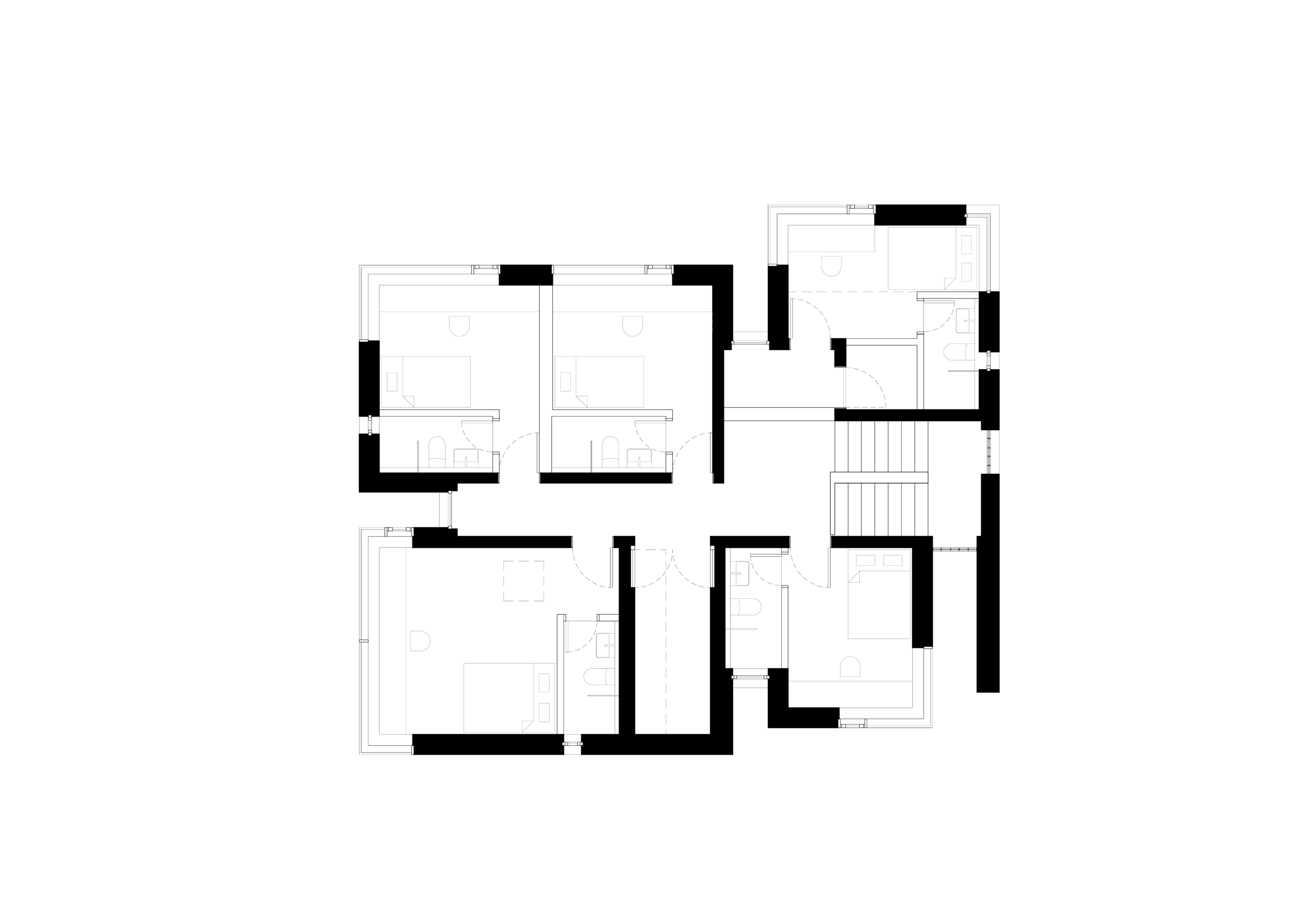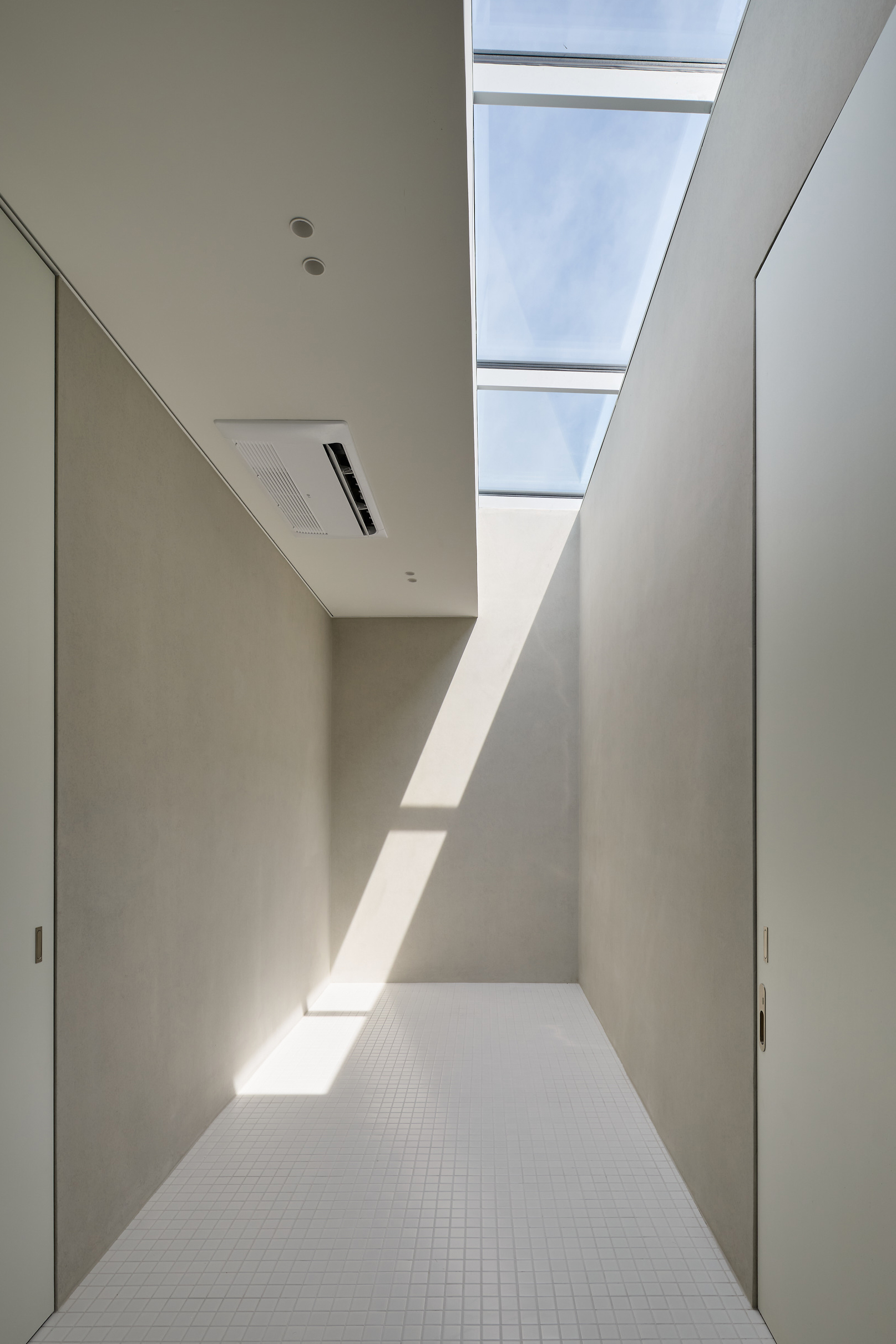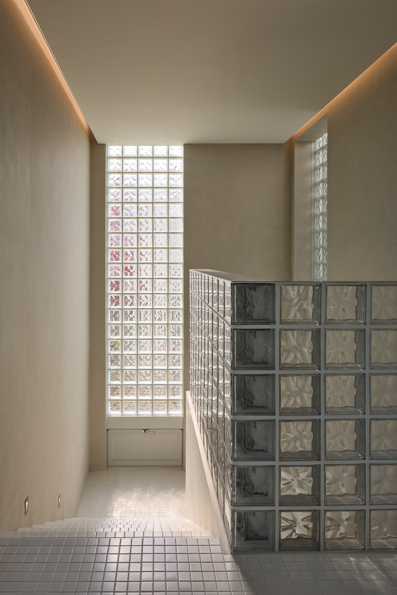 여정은 계속된다. 공용공간을 지나 개인 공간에 이르기 위해 하나의 관문처럼 놓인 높은 문을 열면, 거친 벽면으로 둘러싸인 좁고 높은 통로가 펼쳐진다. 통로는 사방으로 뻗어있고, 그 끝은 각기 다른 성격의 빛을 머금고 있다. 감각은 조용히 밀려나고, 시공간의 흐름은 희미해진 채, 마치 진공 속에 홀로 선 듯한 고요한 몰입에 닿는다.