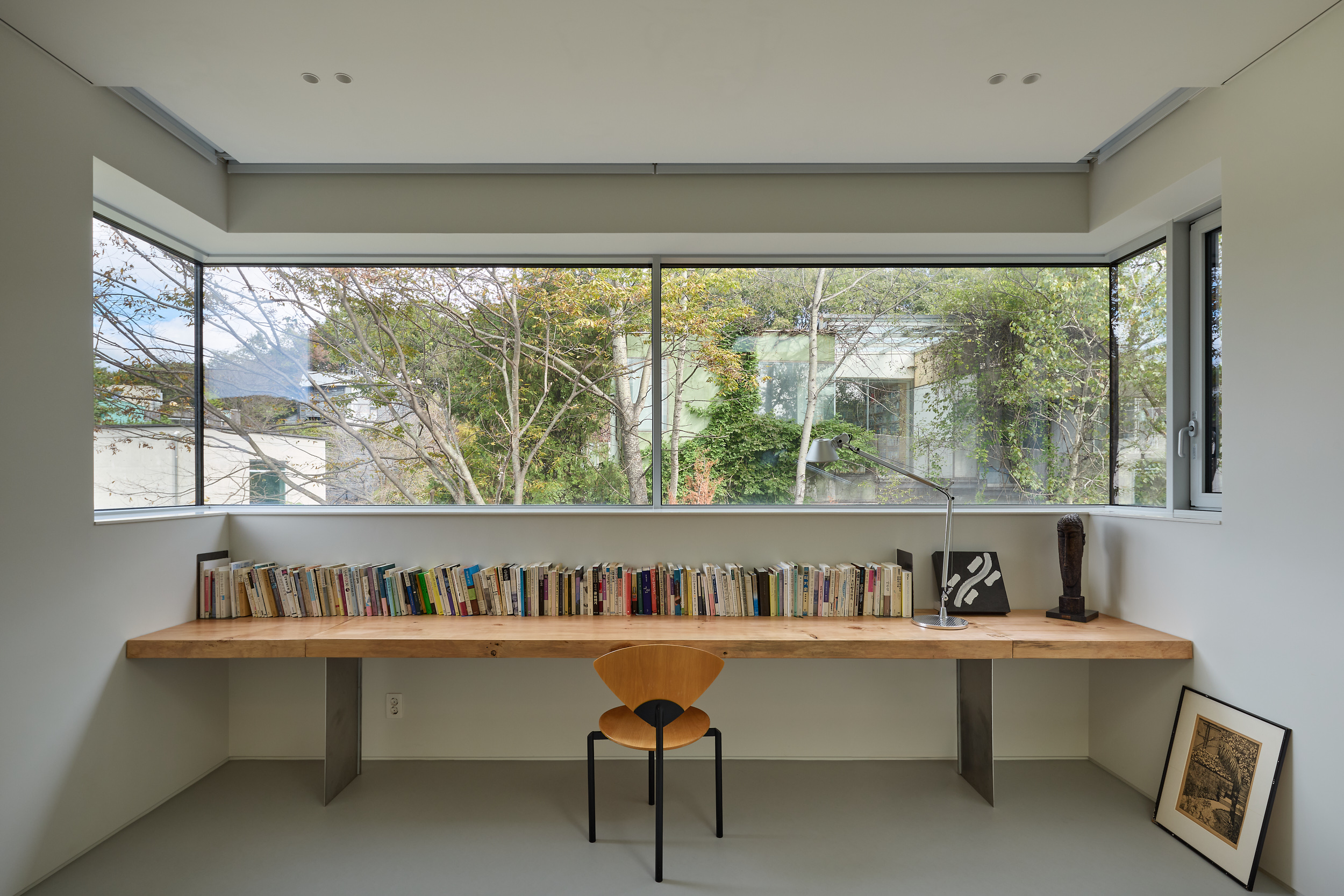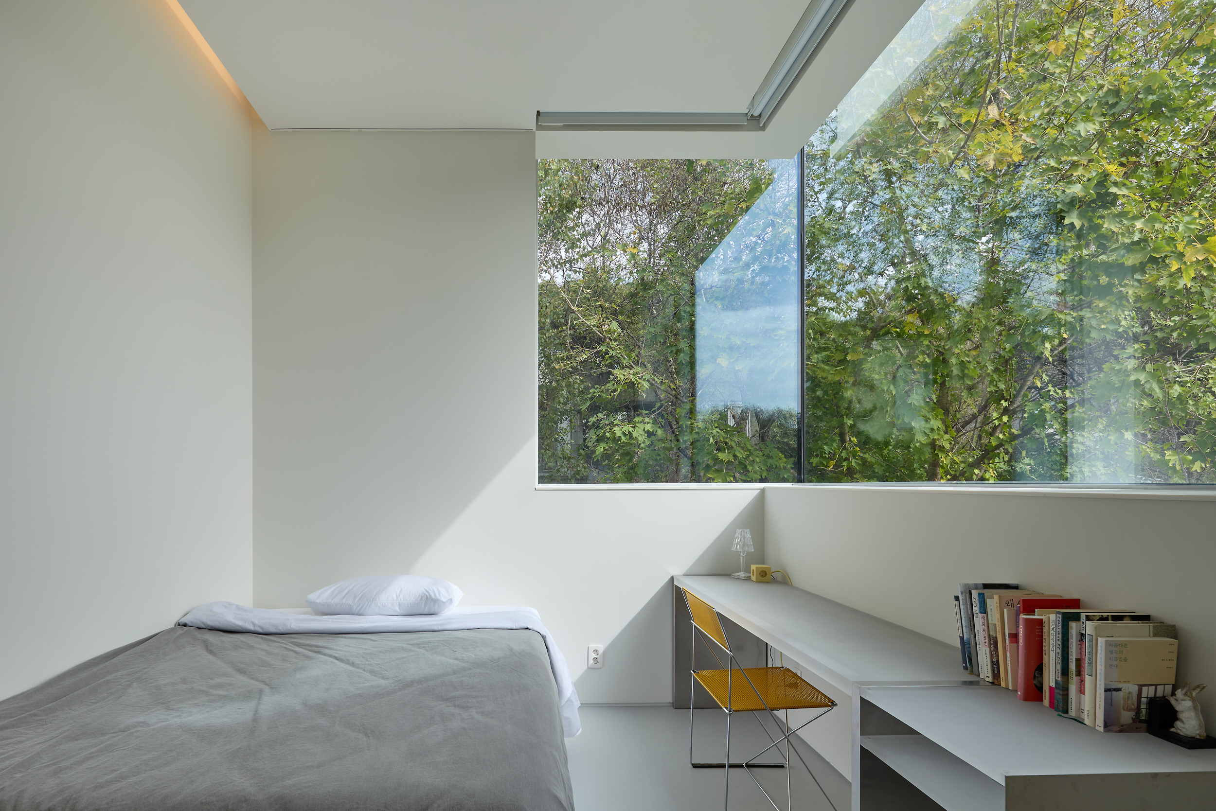 그리고 마침내, 여정의 끝에서 마지막 문을 열고 들어서는 순간, 거대한 창이 정면의 숲을 가득 안은 채 조용히 기다리고 있다. 이곳은 긴장과 이완의 여정 끝에 도달한, 오직 자신에게 집중할 수 있는 내면의 고요다. 그 안에서, 조용히 나를 마주한다.